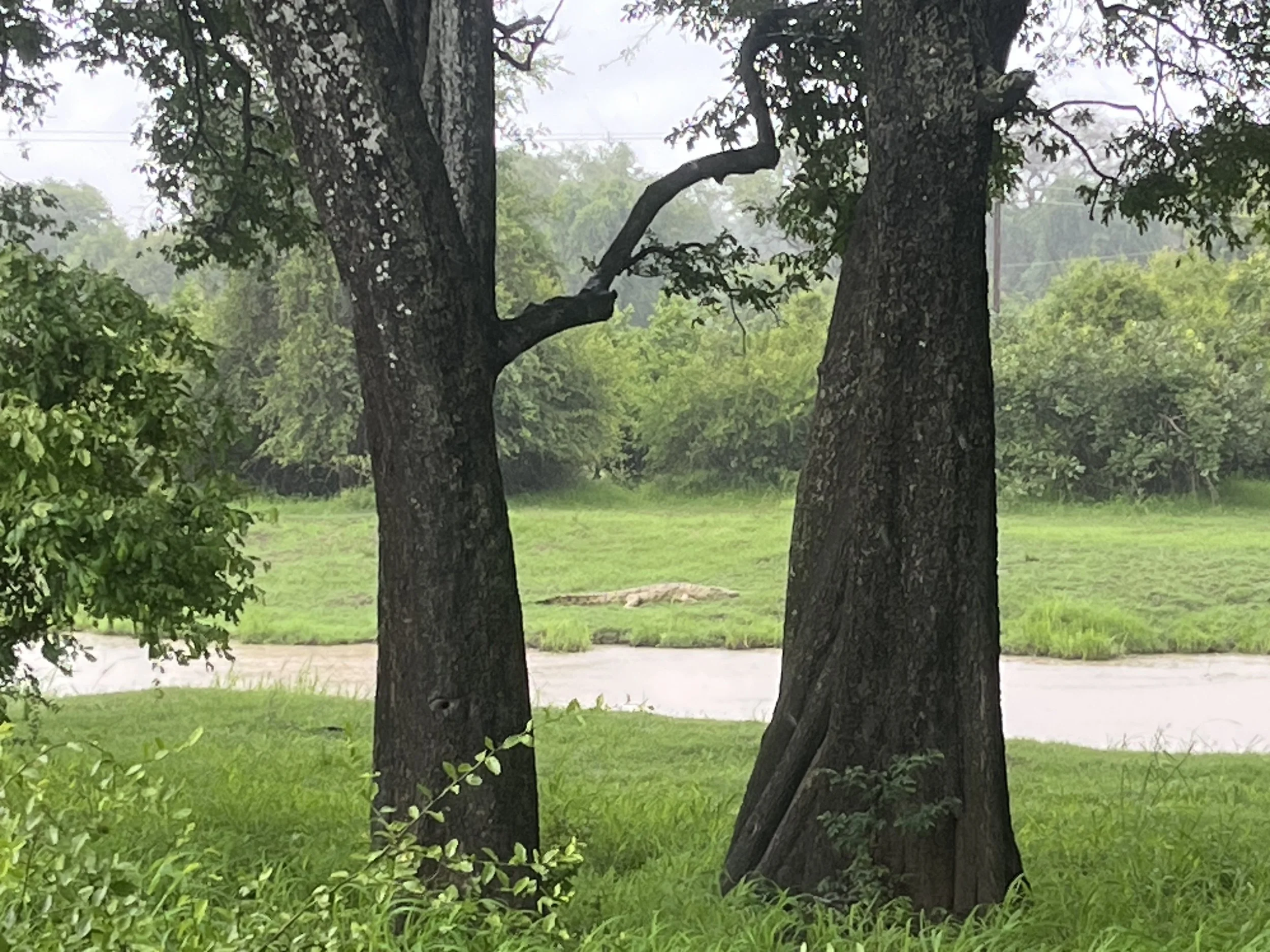 Since the rains started a few weeks ago, the once-dry lagoon has filled with water. And hippos. And crocodiles. The hippos, grumpy and extremely dangerous, blunder about on the bank, grazing, before hefting themselves into the water to cool down. The crocs sunbathe on the bank where just a few weeks ago we walked Beau in the cool early mornings before the rains came. Even these relatively safe walks were somewhat adrenalin-filled as we looked out for elephants. They can be extremely quiet and surprisingly difficult to see. I know of a man here – a trained bush scout – who died with his pants down and a gun in his hand because he didn’t see the elephant when he was caught short on a game drive. The poor guy was taken completely by surprise and didn’t even have time to adjust himself before being gored by an angry tusker. Tragedies like this are not as rare as you’d hope.
